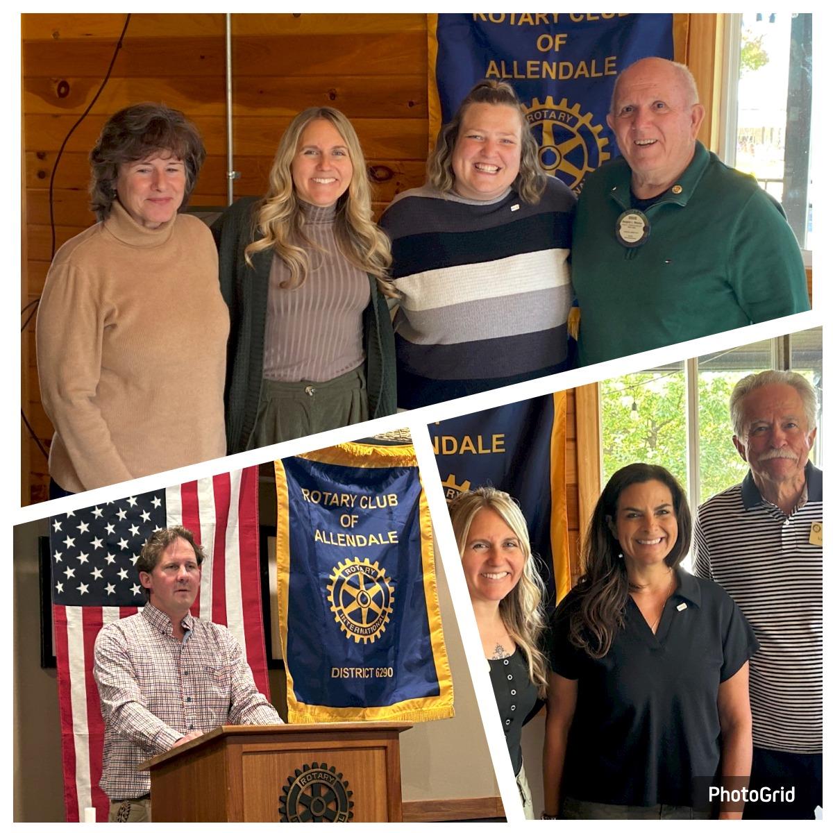 Allendale Rotary Keeps Growing! Welcome to our new members inducted in October. Top L-R: Diane Miller, Club President Abby Black, Cierra Allen, Doug Mealey. Bottom Left: Andrew Kucera. Bottom right L-R: Club President Abby Black, Dana Hebreard, Club Membership Chr Van Bullen.